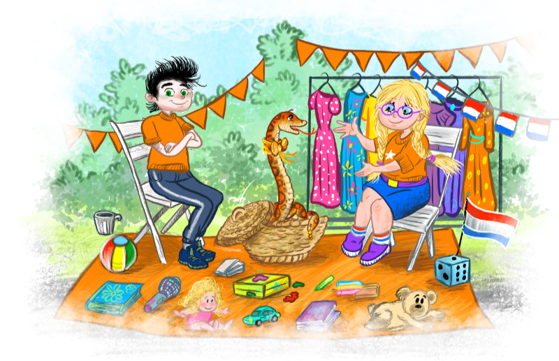 Hieronder vind je een kleurplaat en een aantal puzzels uit het boek De Snakies. Je kunt ze downloaden en uitprinten: